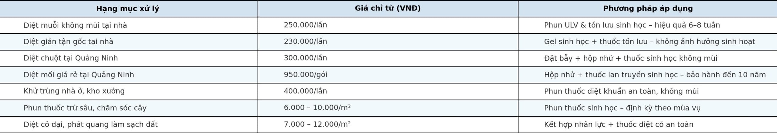 Bảng giá dịch vụ diệt côn trùng tại Quảng Ninh năm 2025