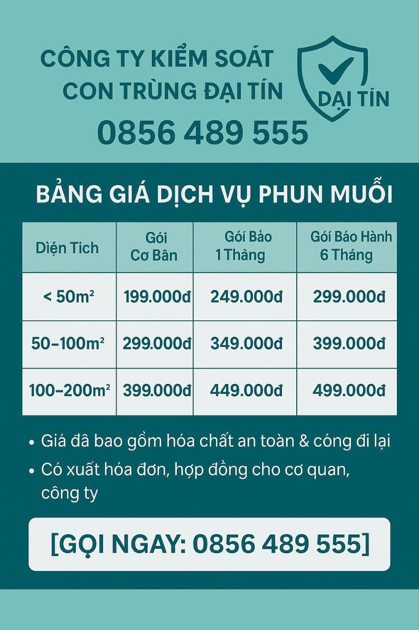 - 12 Bảng giá địch vụ phun muỗi mới nhất của Đại Tín Pest Control