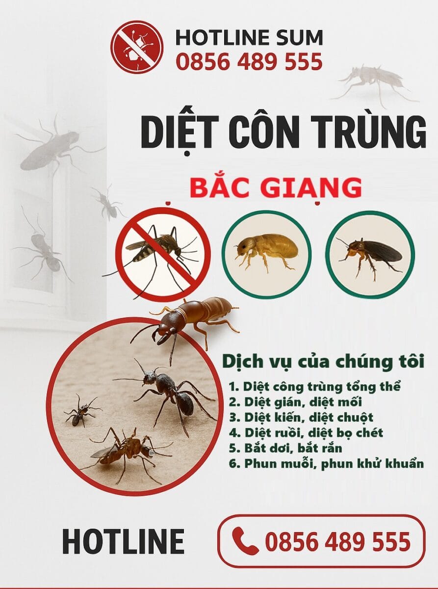 Dịch vụ kiểm soát côn trùng chuyên nghiệp Bắc Giang của chúng tôi mang đến giải pháp diệt trừ tận gốc. Đảm bảo không gian sống và làm việc luôn an toàn, sạch sẽ. Với công nghệ tiên tiến và đội ngũ chuyên gia giàu kinh nghiệm. Chúng tôi cam kết mang lại hiệu quả vượt trội với chi phí hợp lý nhất.